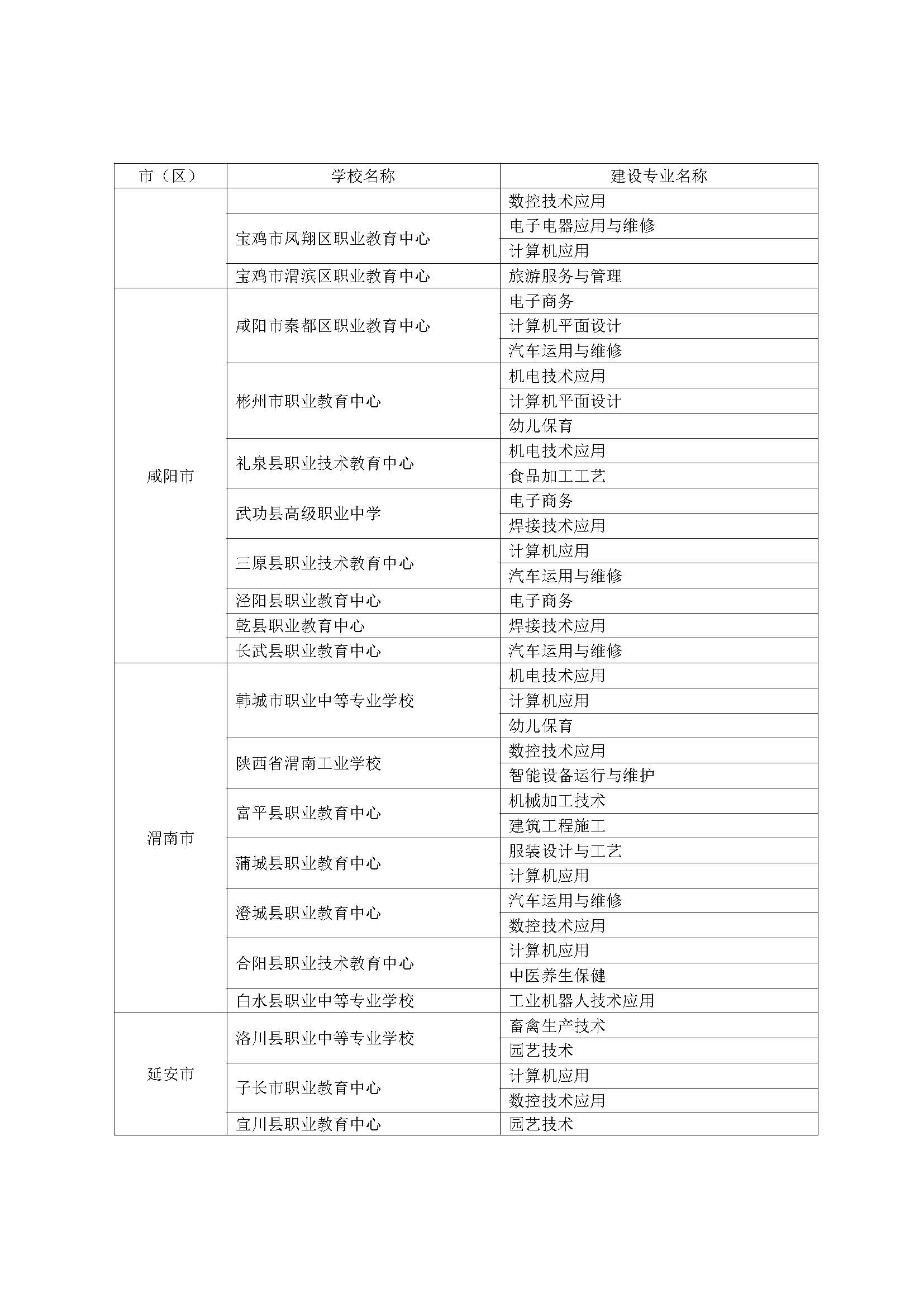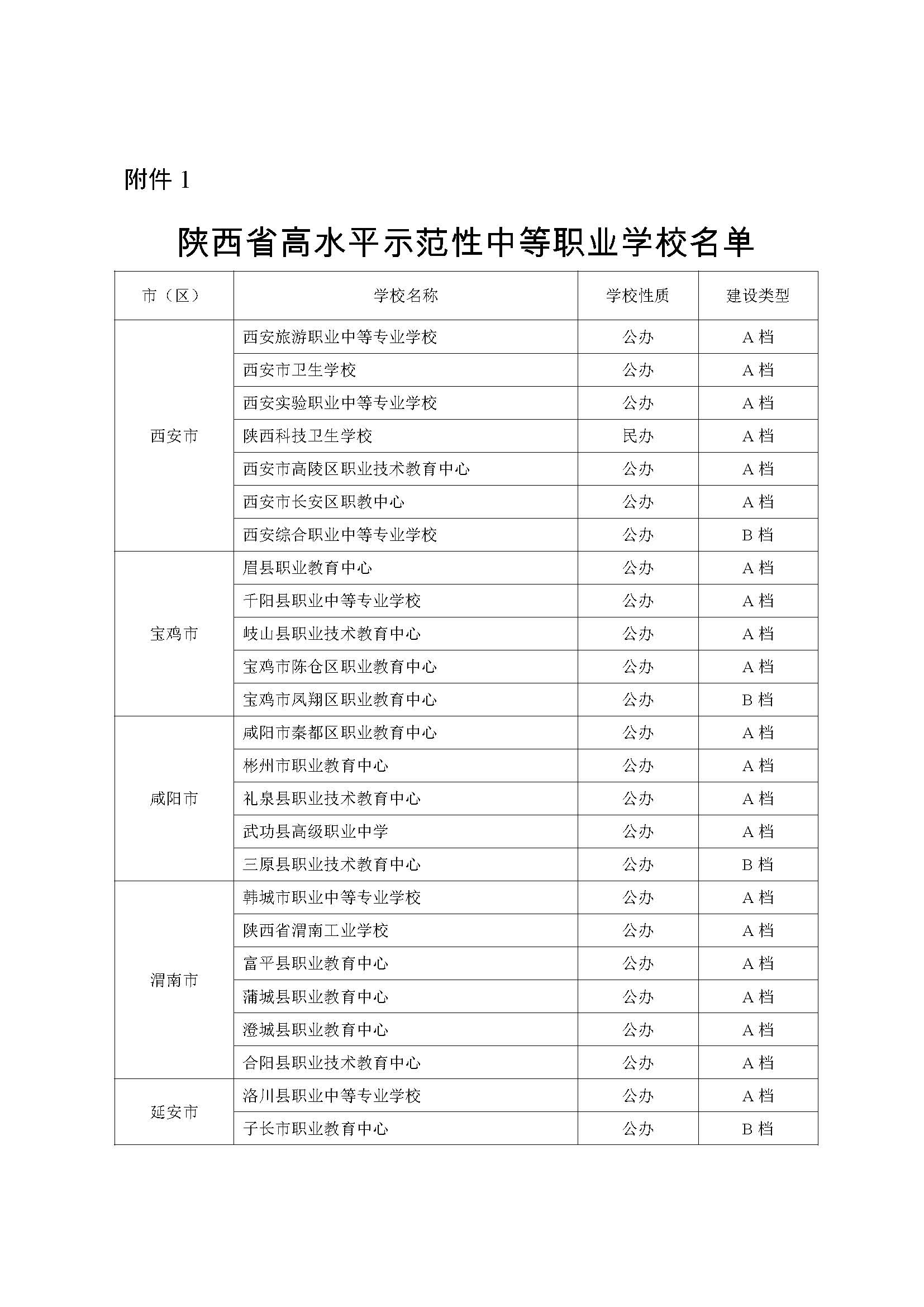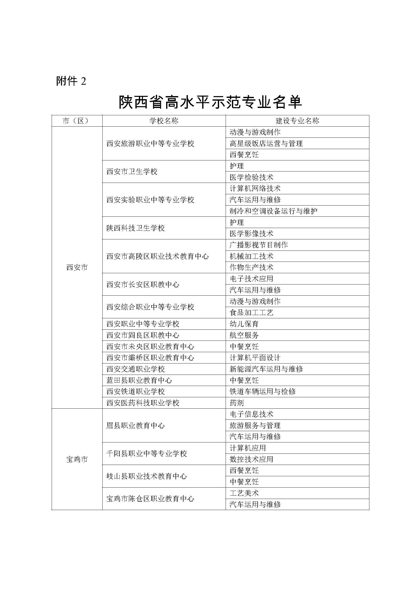 根據《陜西省教育廳 陜西省財政廳關于印發(fā)〈陜西省中等職業(yè)教育優(yōu)質學校和優(yōu)質專業(yè)建設計劃實施方案〉的通知》(陜教〔2023〕10號,以下簡稱《實施方案》),經學校申報、市級推薦、形式審查、專家評審和結果公示等程序,現將50所陜西省高水平示范性中等職業(yè)學校和150個示范專業(yè)建設項目(以下簡稱“雙示范”建設項目)名單予以公布,并就做好有關工作通知如下。